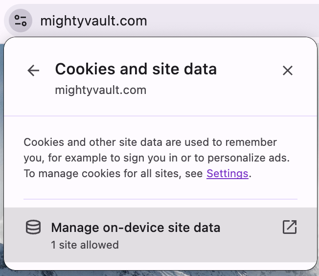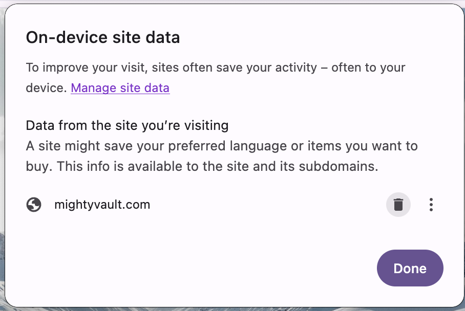 - Click Manage on-device site data