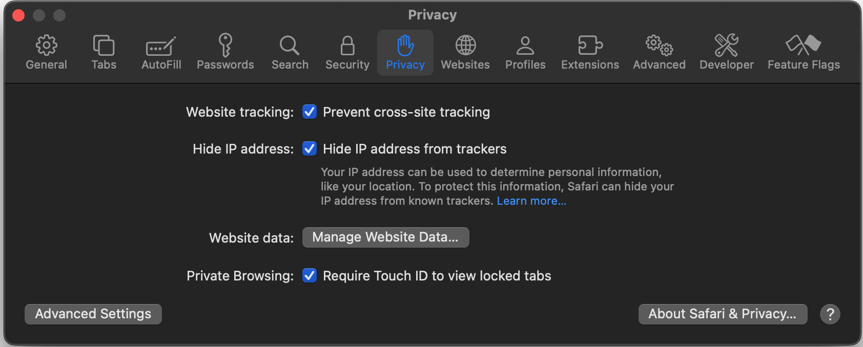 Cmd (⌘)+,to open the Preferences Dialog - Click on the Privacy tab