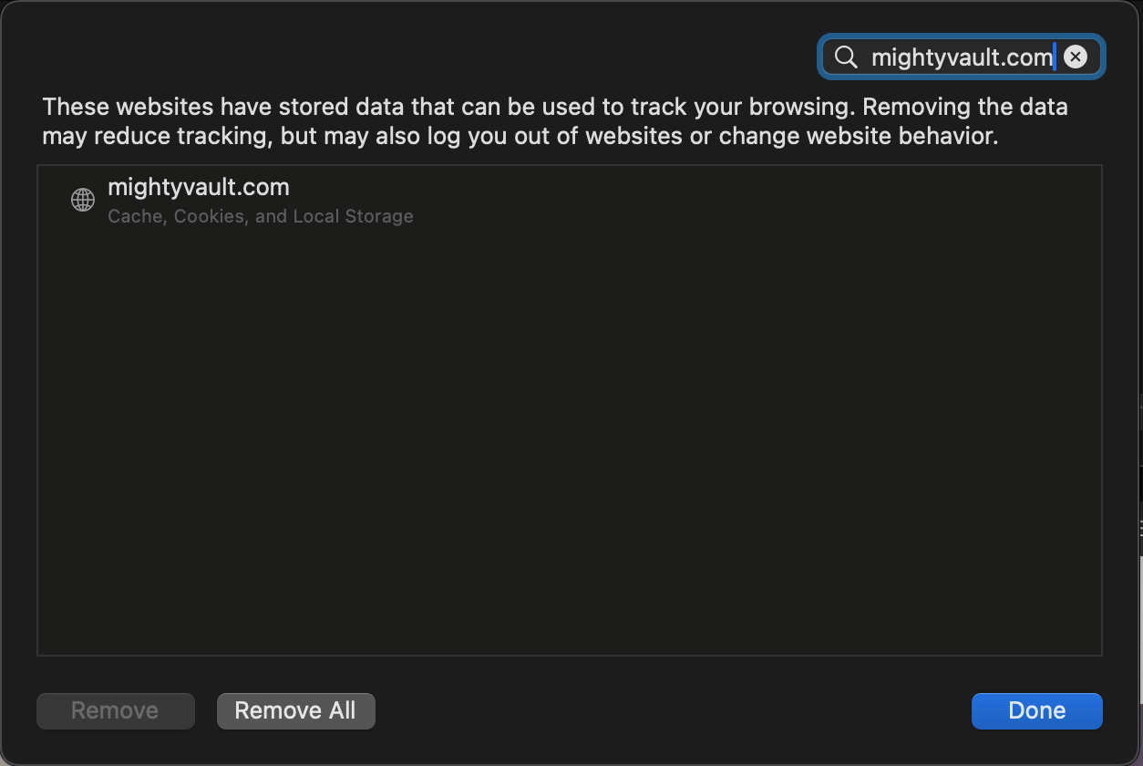 - Click the trash icon next to the website URL